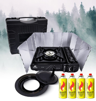 MaxiCamp Kuchenka turystyczna gazowa na kartusz BLACK + Osłona przeciwwiatrowa + 4 x kartusz gazowy
