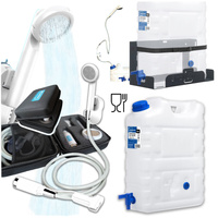 SimplyCan Prysznic turystyczny bezprzewodowy z akumulatorem + Pojemnik na wodę pitną 20L (max. 22L) ATEST + Metalowy uchwyt mocowanie
