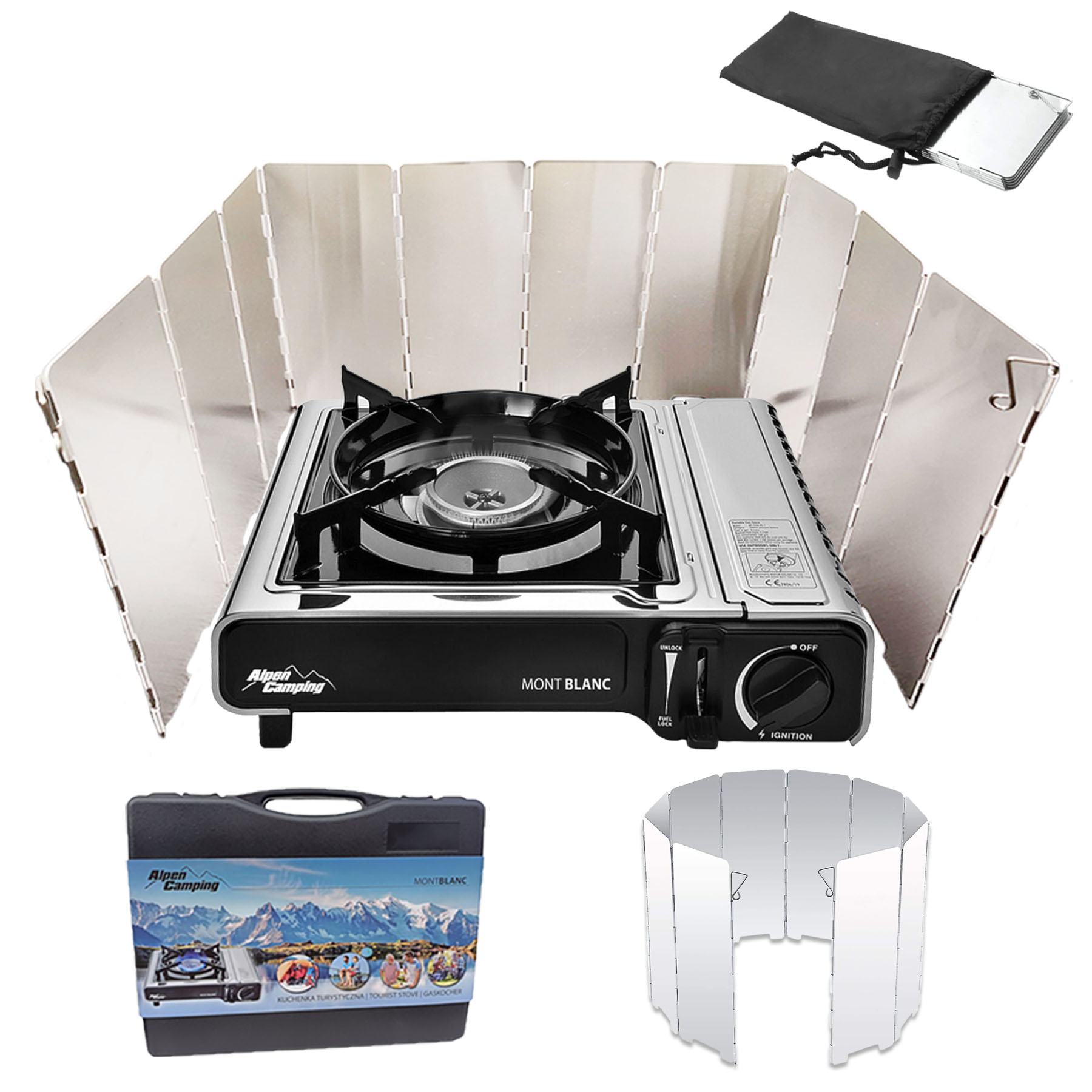 ALPEN CAMPING Kuchenka turystyczna MONT BLANC x1 + ALPEN CAMPING Osłona przeciwwiatrowa do kuchenki turystycznej