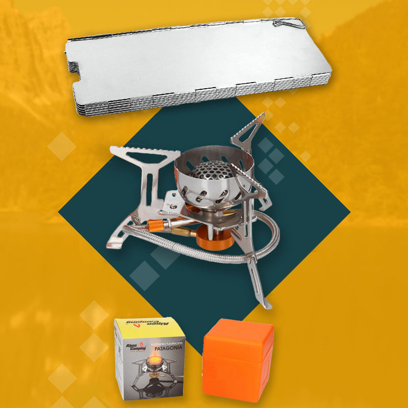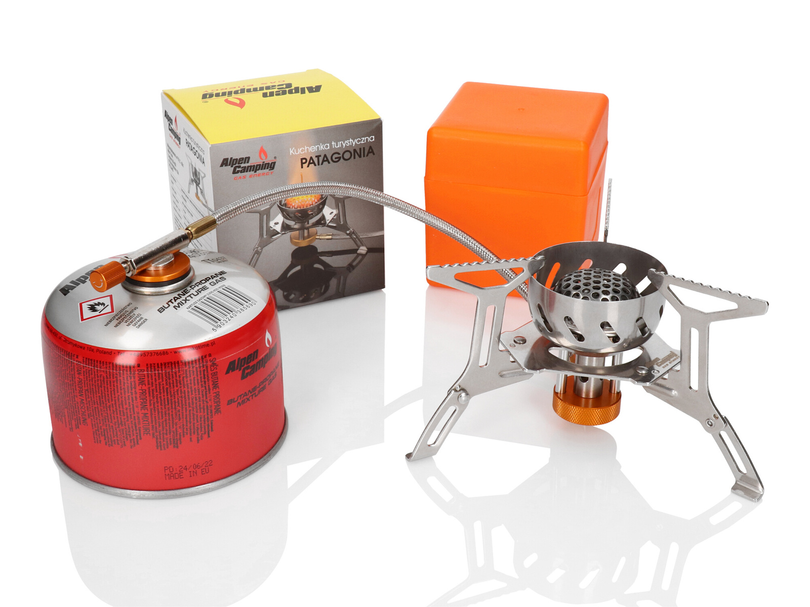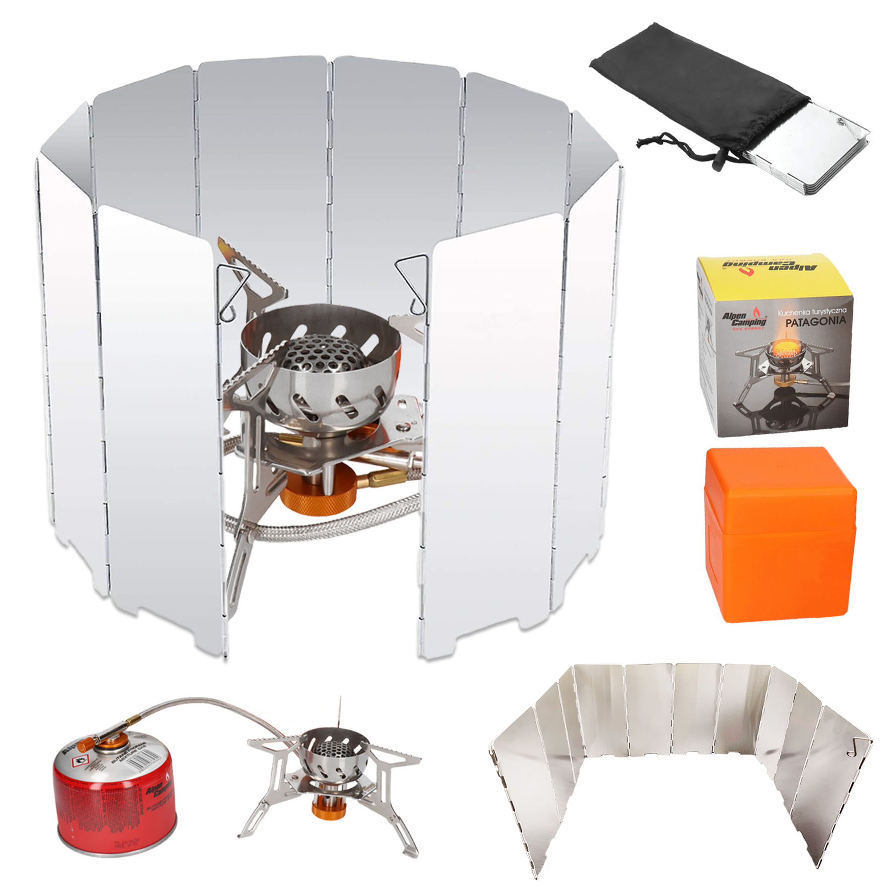 ALPEN CAMPING Kuchenka turystyczna PATAGONIA + ALPEN CAMPING Osłona przeciwwiatrowa do kuchenki turystycznej