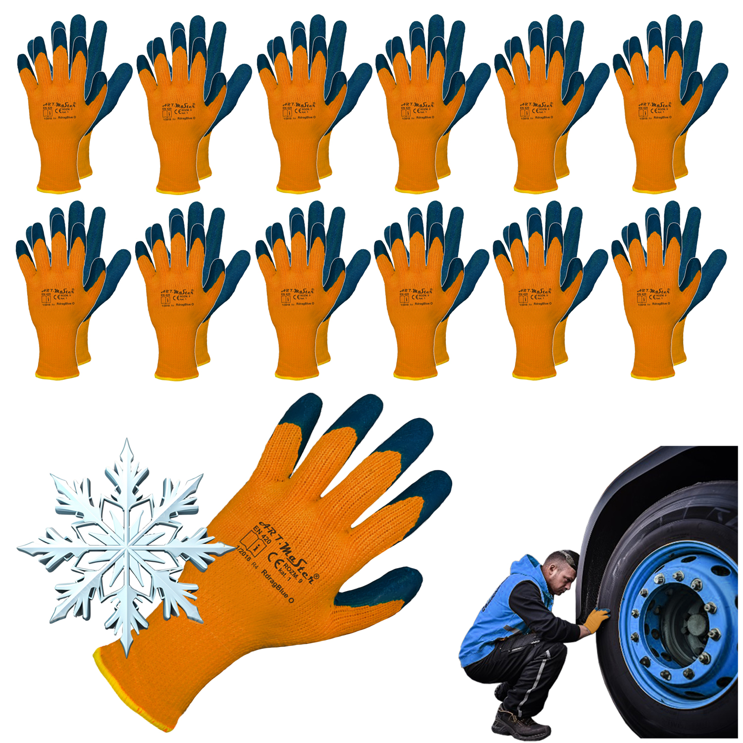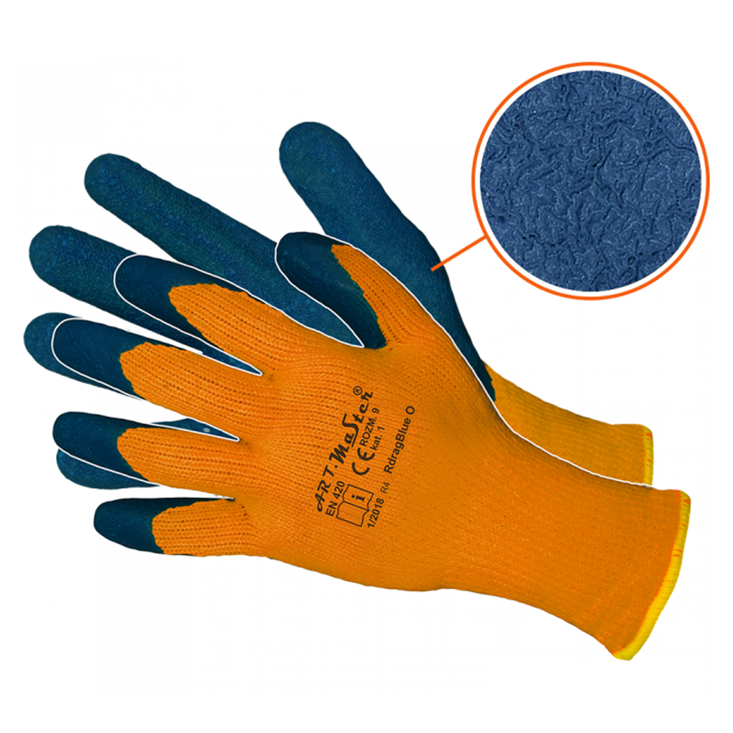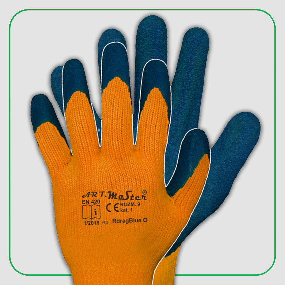 ART.MAS Rękawice ochronne robocze ocieplane RDRAG BLUE O kat.1 dzianina + lateks r. 10 x12
