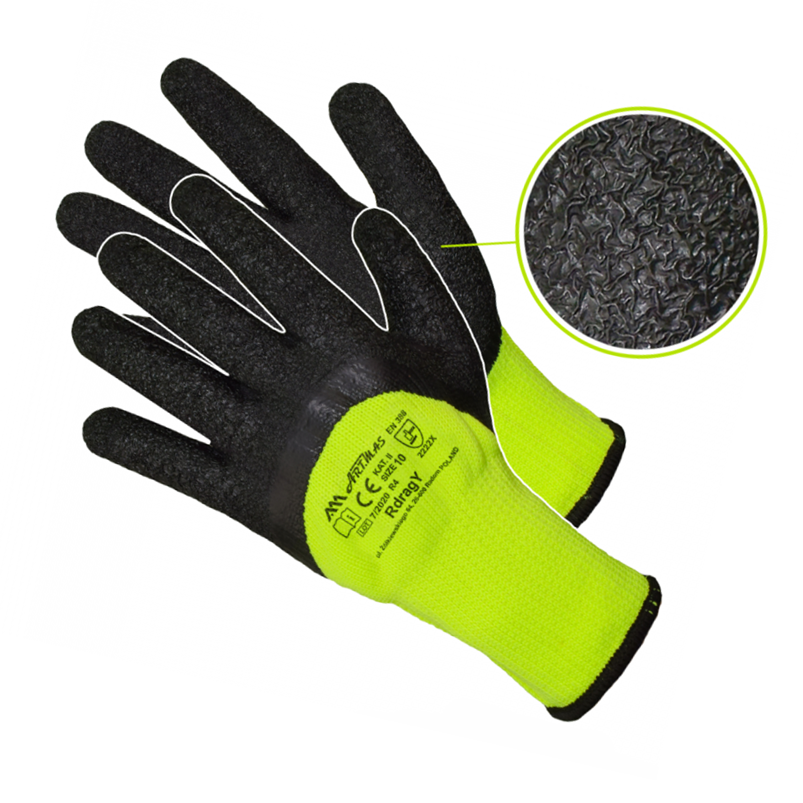 ART.MAS Rękawice ochronne robocze ocieplane RDRAG YELLOW kat.2 dzianina + lateks r. 10 x12