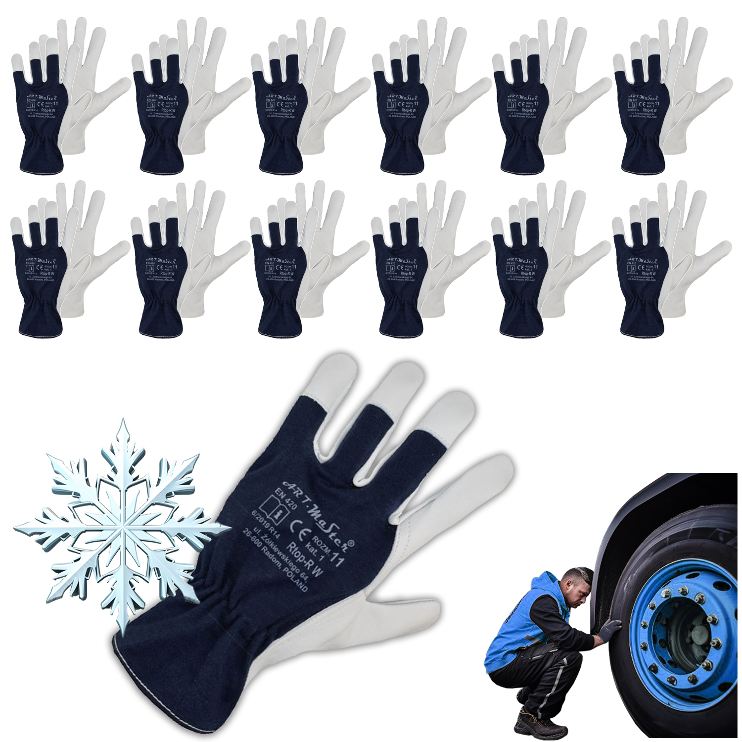 ART.MAS Rękawice ochronne robocze ocieplane RTOP-R WINTER kat.1 skóra licowa kozia r. 10 x12