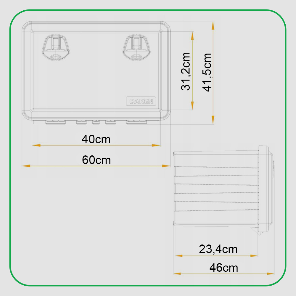 DAKEN Skrzynka narzędziowa JUST 600x415x460 74l / 50kg + DAKEN Uchwyty montażowe / wsporniki do skrzynek narzędziowych zestaw