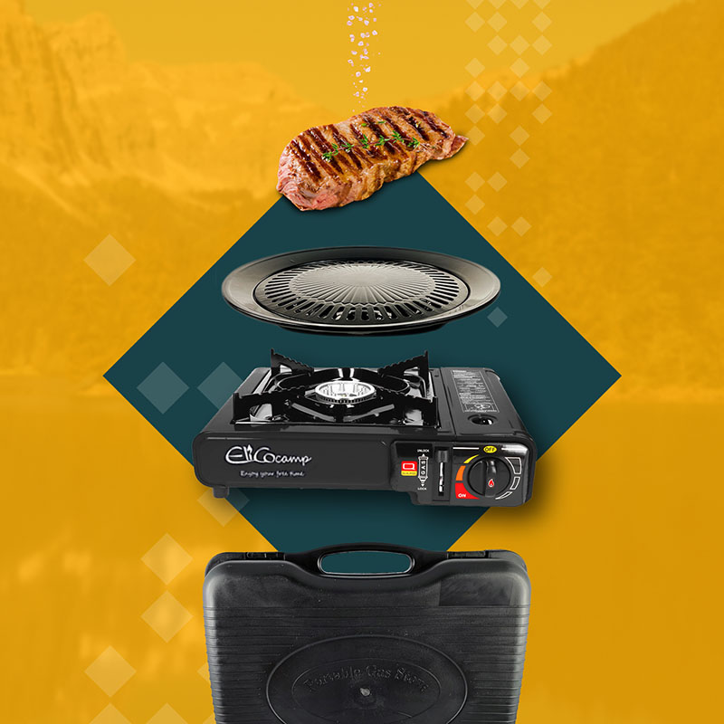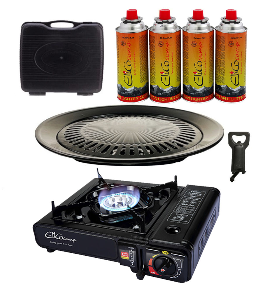 ELICOCAMP Kuchenka turystyczna BDZ-155B x1 + ELICOCAMP Kartusz Gazowy 220g x4 + IMEX Nakładka grillowa 30,5cm x1