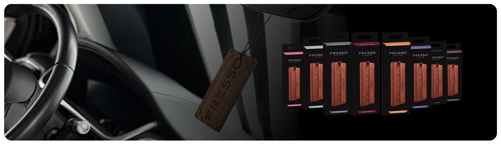 Zawieszkę marki Fresso wyróżnia, subtelny trwały zapach oraz elegancki wygląd, który będzie doskonale prezentować się w każdym aucie. Przyjemny aromat wewnątrz samochodu umili Ci czas podczas podróży oraz zwiększy komfort jazdy.