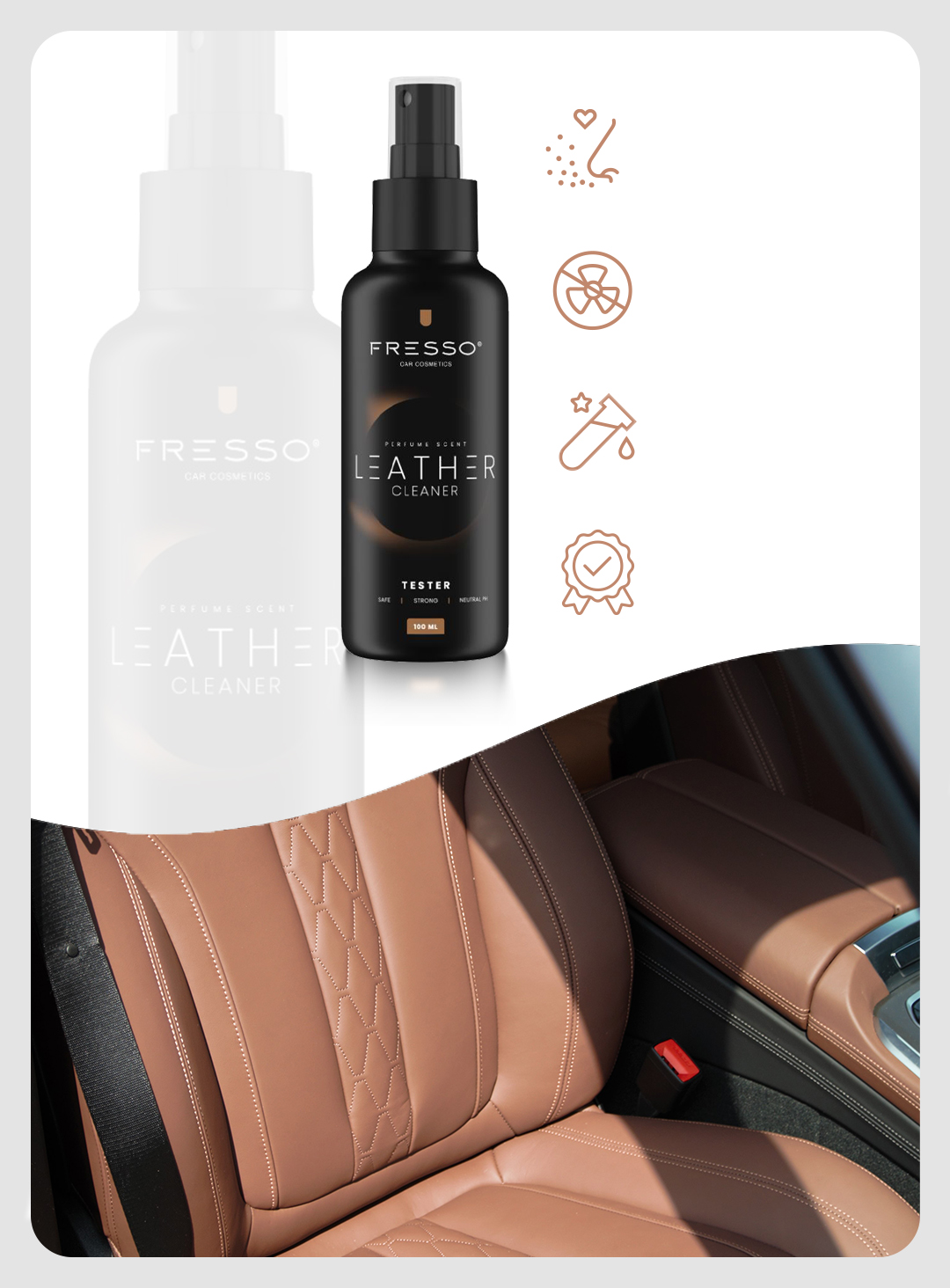 ✅ Unikalna receptura o silnej mocy czyszczenia błyskawicznie usuwa z tapicerki wszelkie zabrudzenia. Preparat tworzy gęstą i trwałą pianę, która wnika w struktury skóry, dokładnie ją oczyszczając i usuwając z niej nieprzyjemne zapachy. Leather Cleaner pozostawia tapicerkę gładką, świeżą i pachnącą.