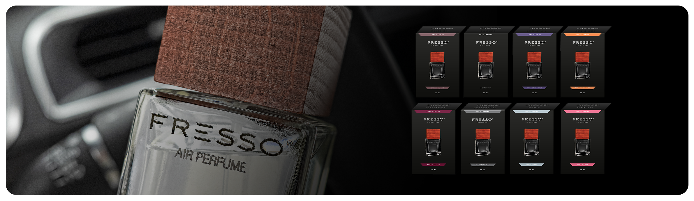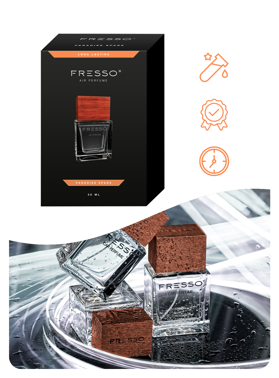Perfumy marki Fresso wyróżnia niezwykła kompozycja zapachowa ukryta w szklanym, eleganckim flakonie. Przyjemny aromat wewnątrz samochodu umili Ci czas podczas podróży oraz zwiększy komfort jazdy.