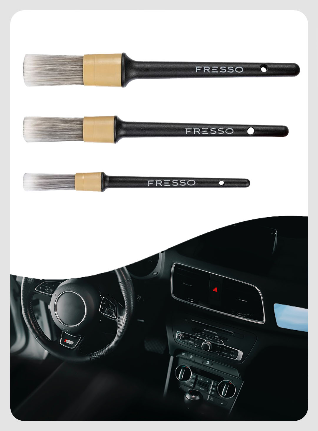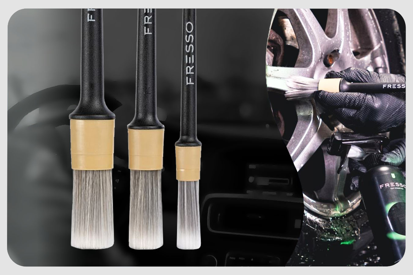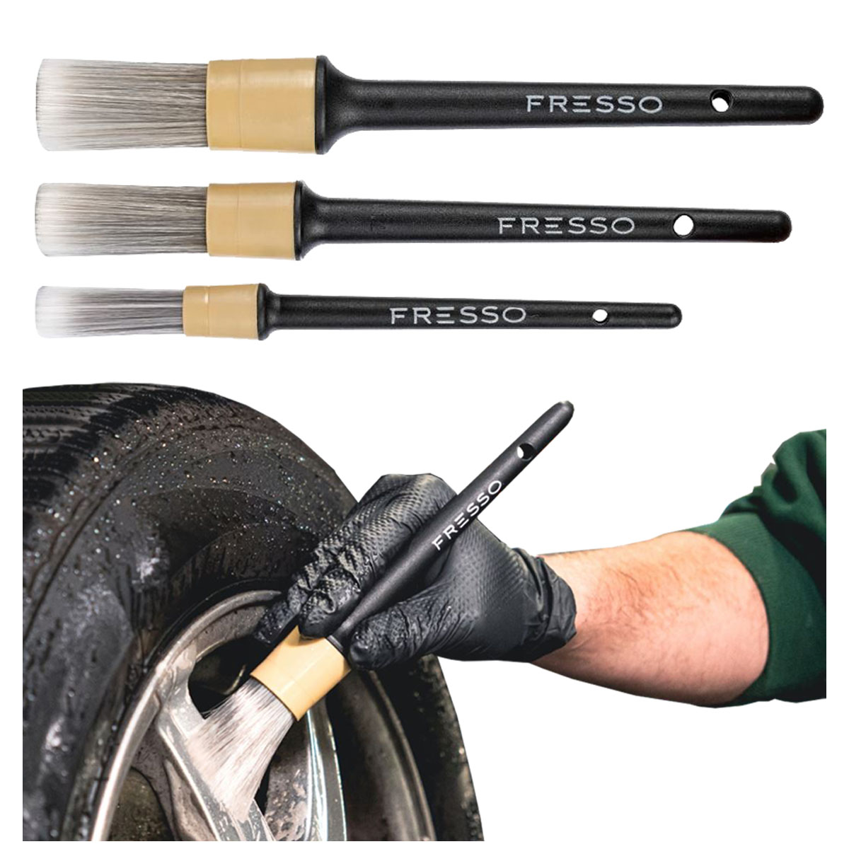 ⭐ FRESSO Detail Brushes – Delikatne Pędzelki Detailingowe do Samochodu o trzech średnicach