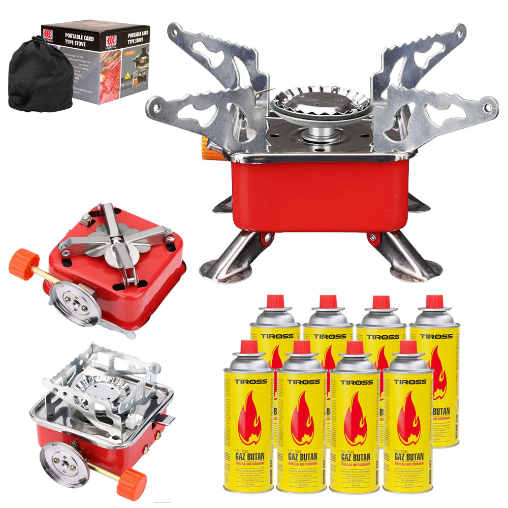 HAPPY HOME Mini Kuchenka turystyczna gazowa + TIROSS Kartusz Gazowy TS700 400ml 227g x8
