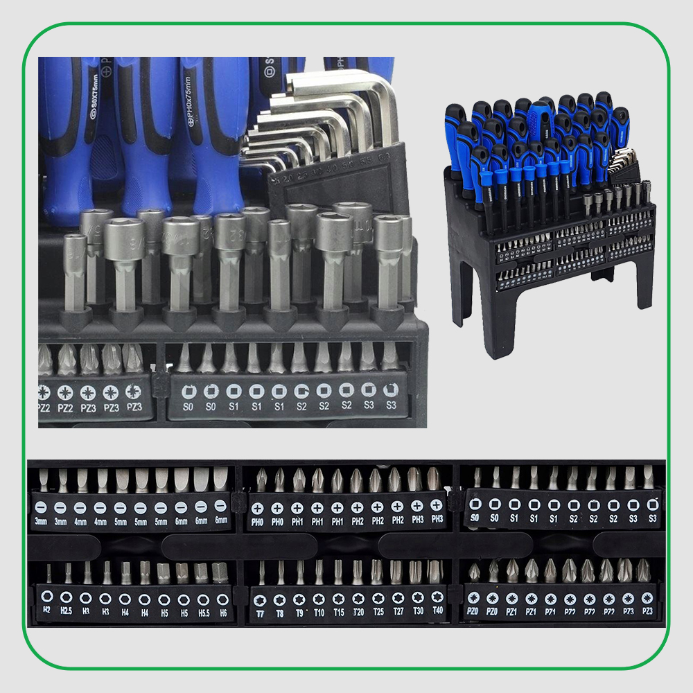 ➡️Zestaw śrubokrętów wkrętaków precyzyjnych bitów - 122 elementy wraz ze stojakiem.