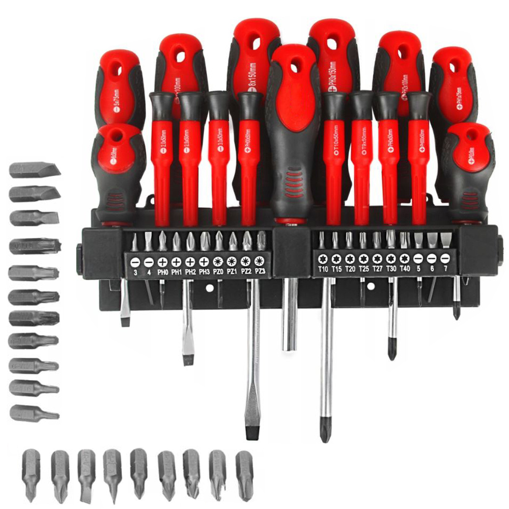 ⭐ Zestaw śrubokrętów wkrętaków precyzyjnych bitów - 36 elementy wraz z organizerem do powieszenia.