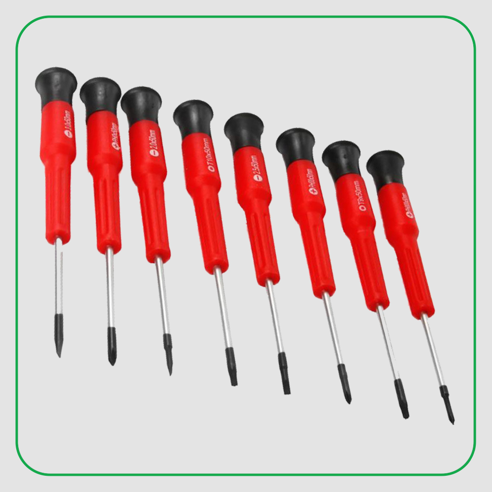 • 8 szt -  Wkrętaki precyzyjne - 2.0x50 mm, 2.5x50mm, 3.0x50 mm, T9,50 mm, PH00x50 mm, PH0x50 mm, PH1x50 mm, T10x50