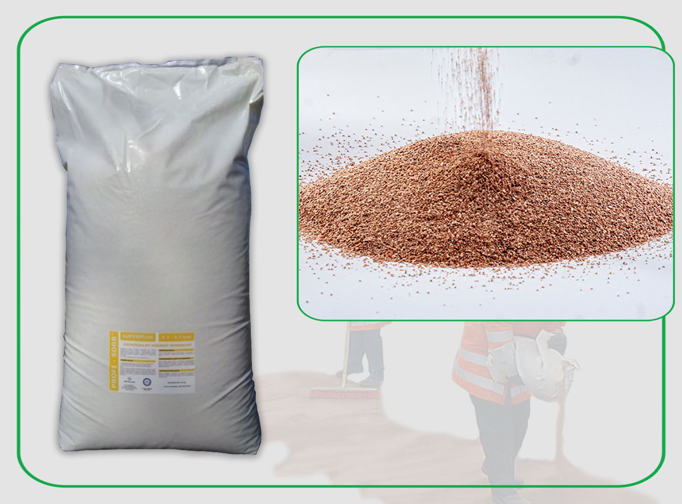 Odkryj nasz niezwykły sorbent mineralny PROFI-SORB SuperPlus, stworzony z myślą o skutecznym usuwaniu skutków wycieków substancji płynnych z utwardzonych powierzchni. Dzięki granulatowi o optymalnej wielkości 0,3-0,7 mm, ten wyjątkowy produkt nie tylko szybko absorbuje ciecz, ale także przeciwdziała niebezpiecznym poślizgom, czyniąc wszelkie przestrzenie czystsze i bezpieczniejsze.