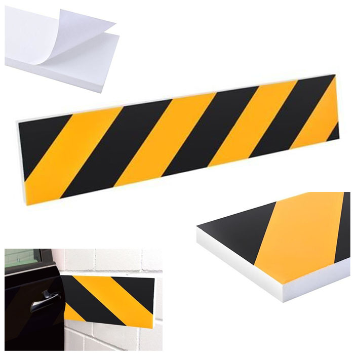 Jaskrawy odcień oraz odblaskowa warstwa sprawia, że ochraniacz jest bardzo dobrze widoczny. Protektor stanowi znak ostrzegawczy i pomaga podczas parkowania ocenić kierowcy odległość pojazdu od ściany. Odbojnik jest samoprzylepny przez co jego montaż jest niezwykle prosty.