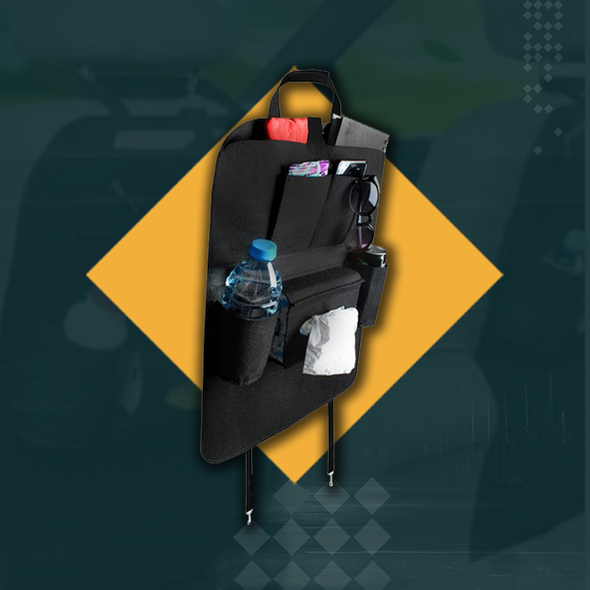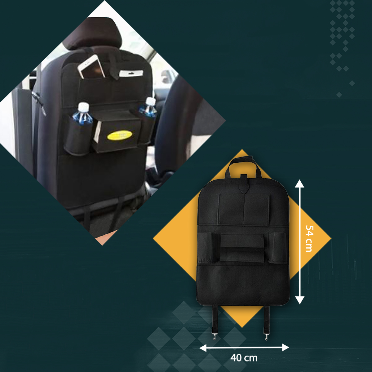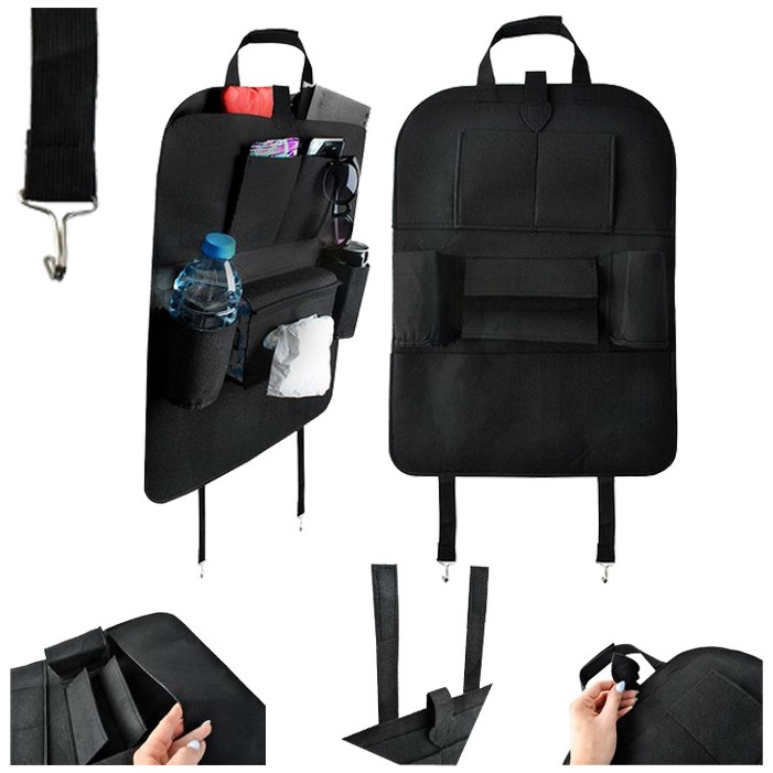 Organizer pozwala uporządkować najpotrzebniejsze gadżety w aucie oraz skutecznie zabezpieczyć je podczas jazdy. Posiada aż 7 kieszeni o różnych rozmiarach, które idealnie sprawdzą się do schowania zarówno małych elementów, jak i większych przedmiotów.