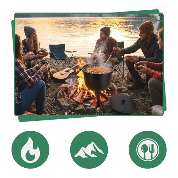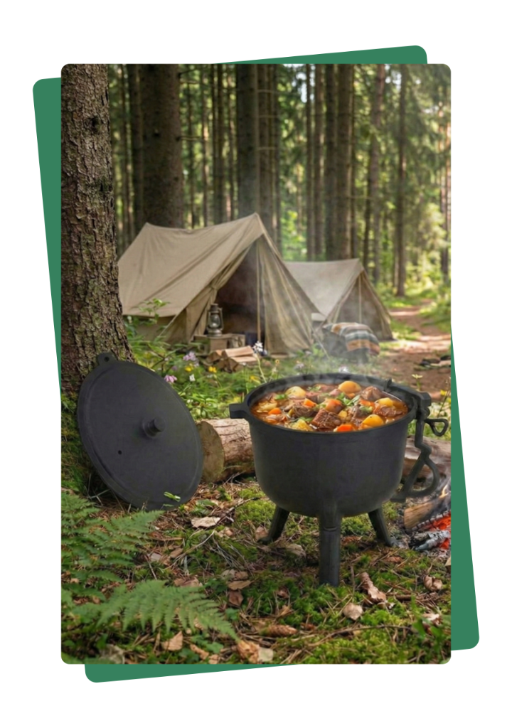 ✅ Kociołek myśliwski 10 L to praktyczne naczynie do gotowania na świeżym powietrzu.