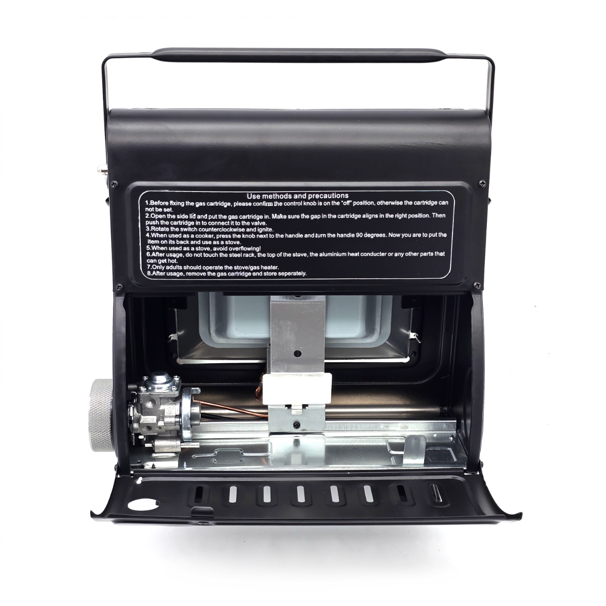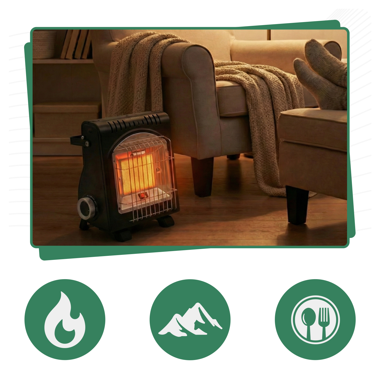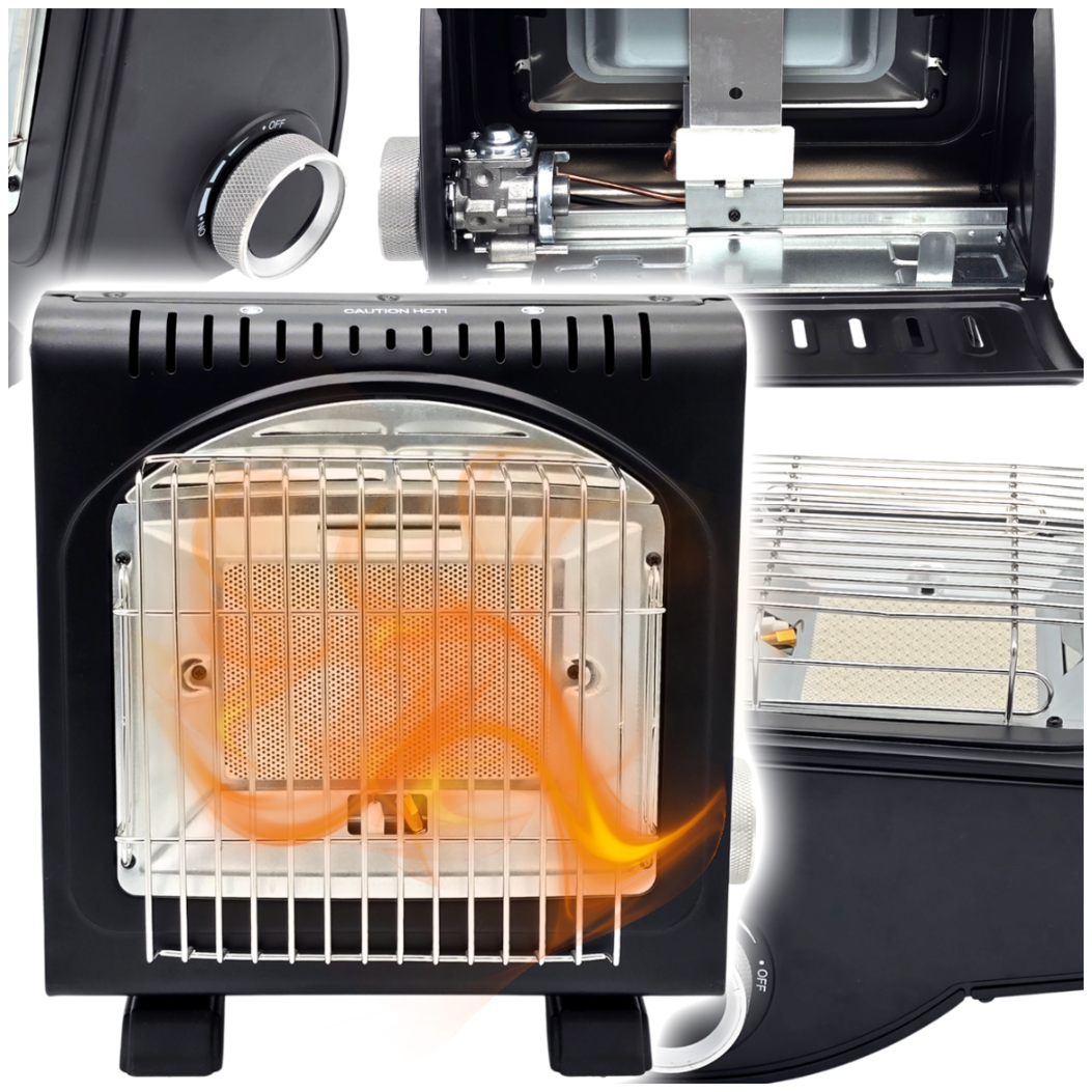 ●     Wystarczy standardowy kartusz gazowy, aby szybko ogrzać pomieszczenie lub podgrzać posiłek - szczególnie przydatne podczas przerw w dostawie prądu i sytuacji awaryjnych.