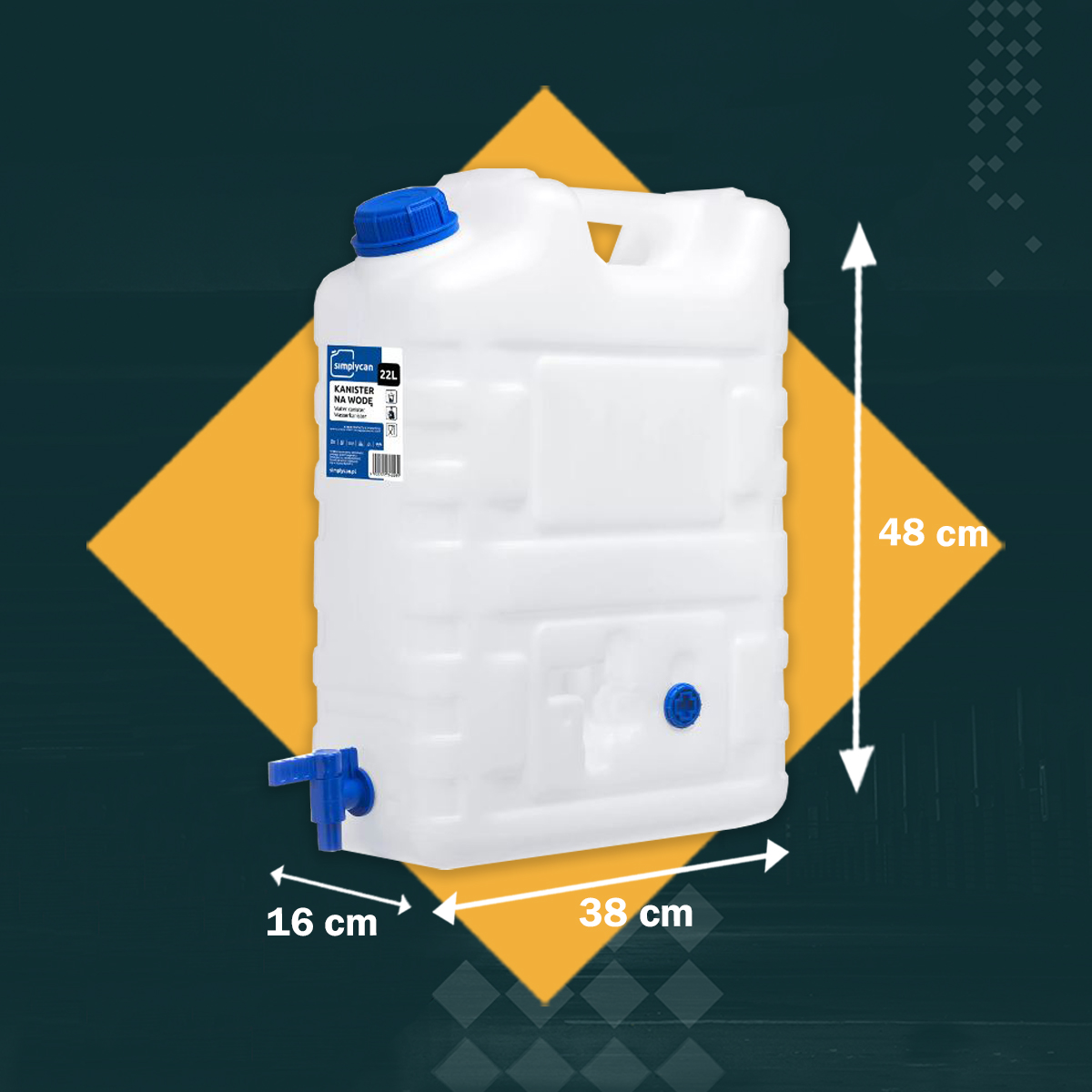 SimplyCan Pojemnik na wodę pitną 20L ATEST kanister z kranikiem (max. 22L) + SimplyCan Dozownik mydła do kanistra 150 ml DIN61