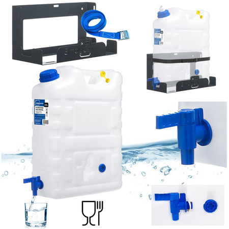 SimplyCan Pojemnik na wodę pitną 20L ATEST odpowietrznik kranik (max. 22L) + Metalowy uchwyt mocowanie