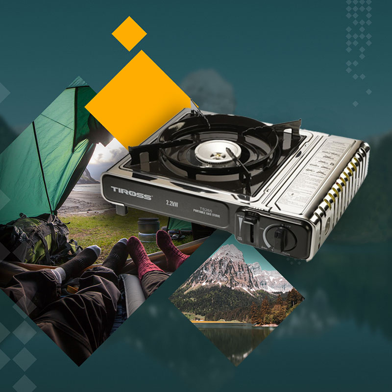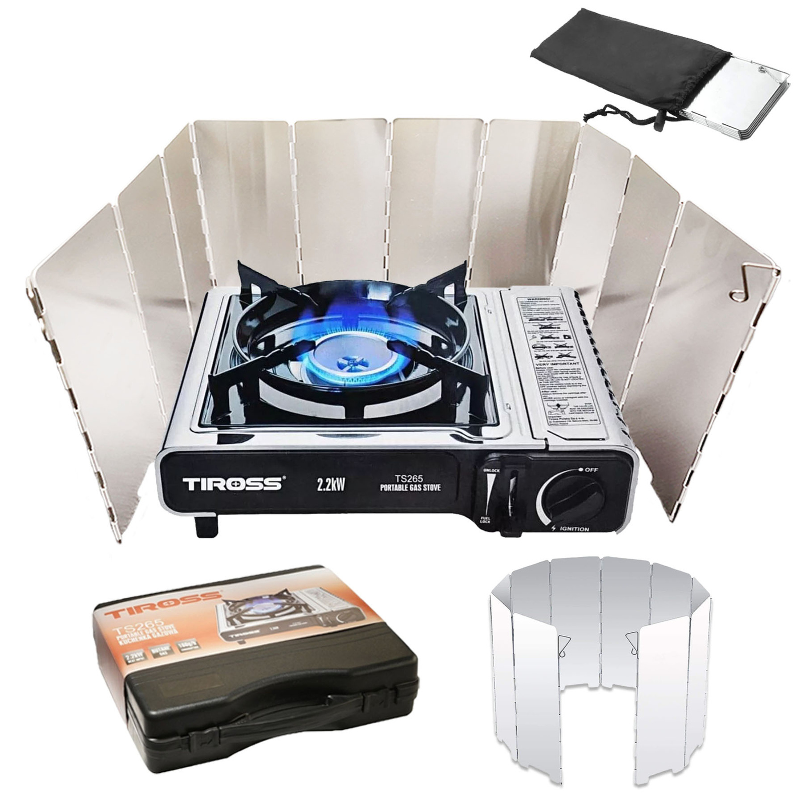 TIROSS Kuchenka turystyczna TS-265 x1 + ALPEN CAMPING Osłona przeciwwiatrowa do kuchenki turystycznej x1