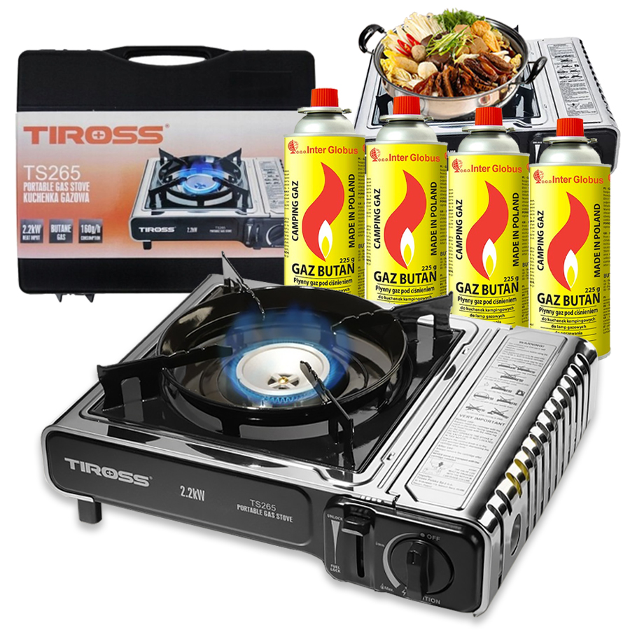 ⭐ TIROSS Kuchenka turystyczna TS-265 x1 + INTER GLOBUS Kartusz Gazowy 400ml 225g x4 ⭐