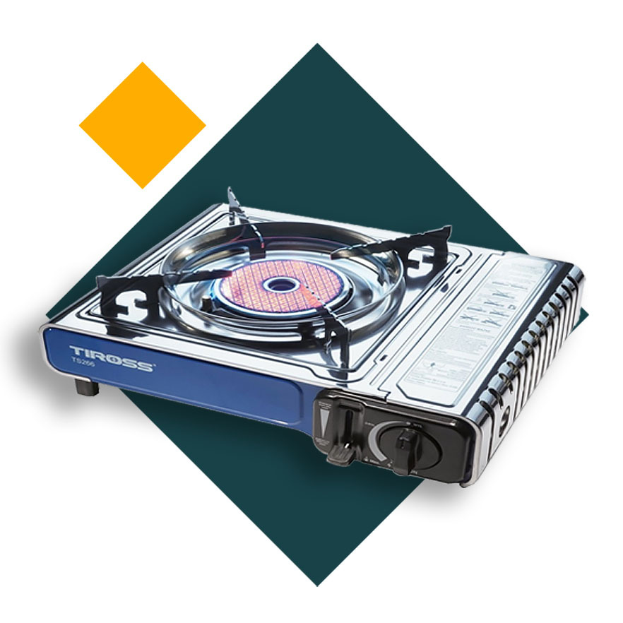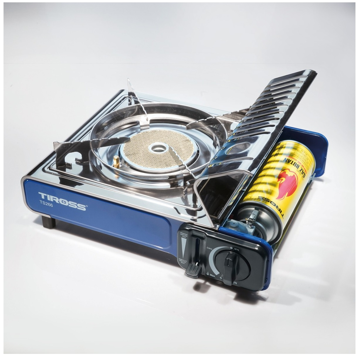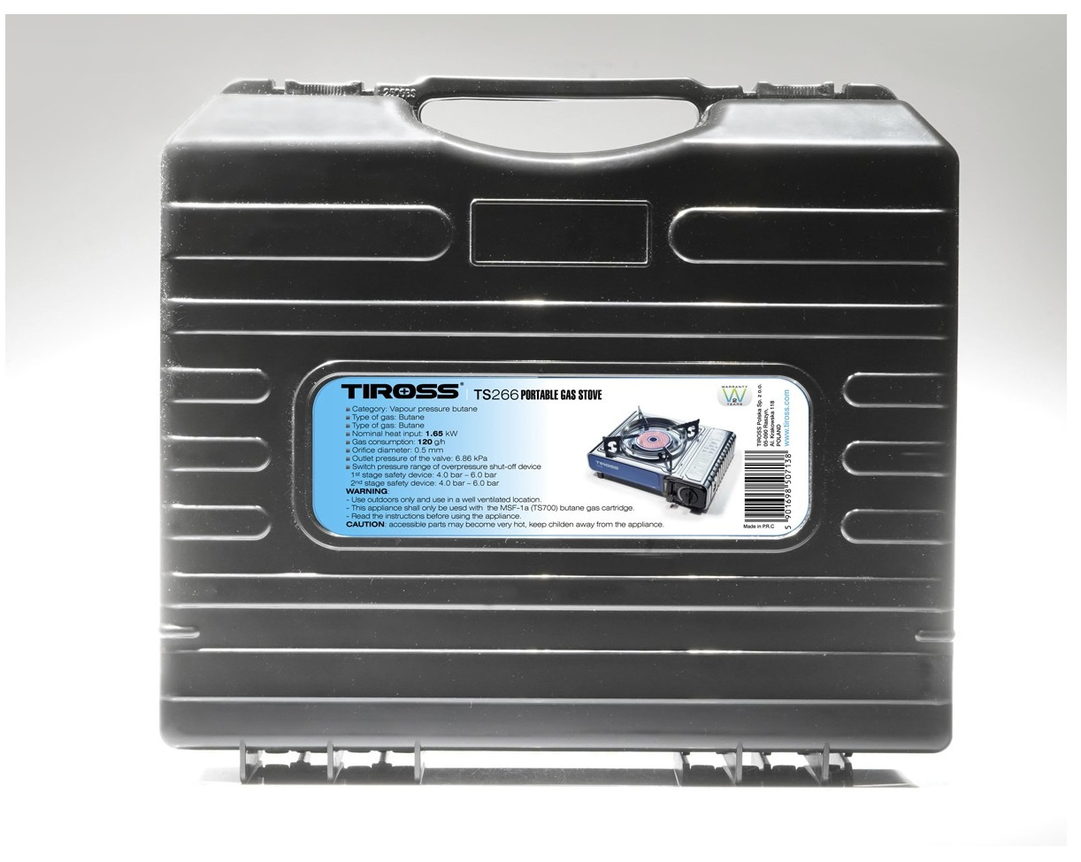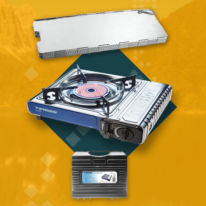 TIROSS Kuchenka turystyczna TS-266 x1 + ALPEN CAMPING Osłona przeciwwiatrowa do kuchenki turystycznej x1 + TIROSS Kartusz Gazowy TS700 400ml 227g x4