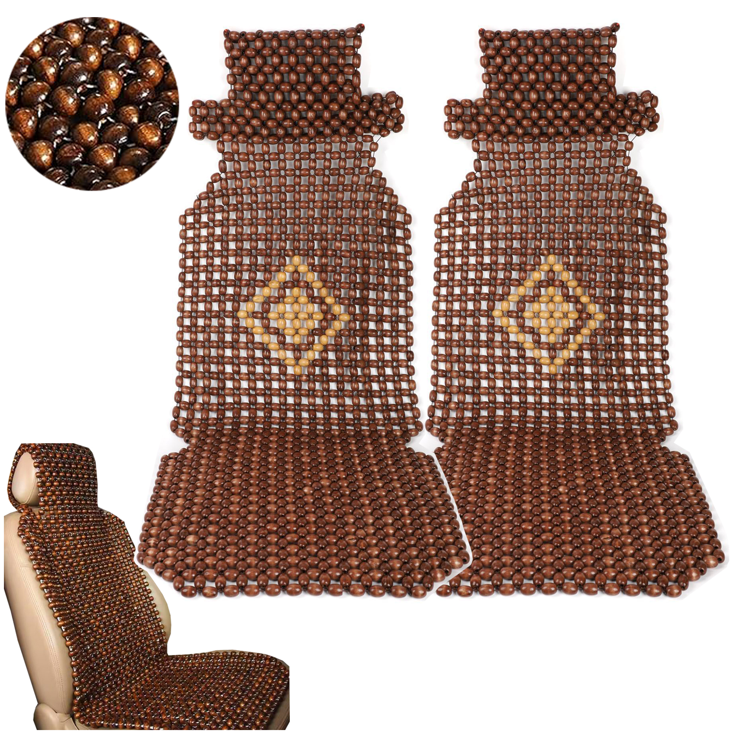 SZEROKA drewniana mata koralikowa z ZAGŁÓWKIEM na fotel samochodowy – Komfort i Zdrowie na Każdej Trasie